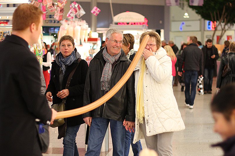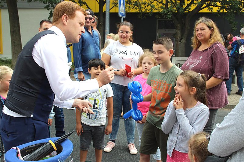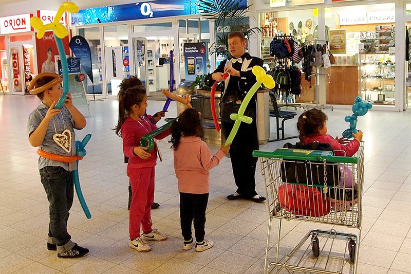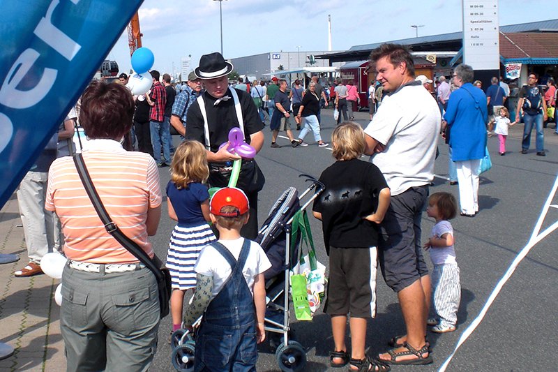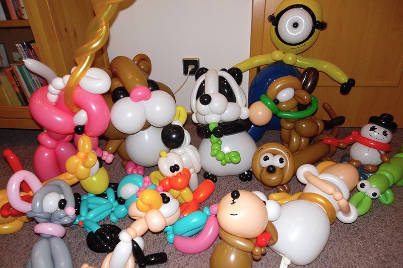 Hier forme ich, in beeindruckender Geschwindigkeit, aus meterlangen Luftballons lustige Figuren, die nicht nur bei Kindern gut ankommen.